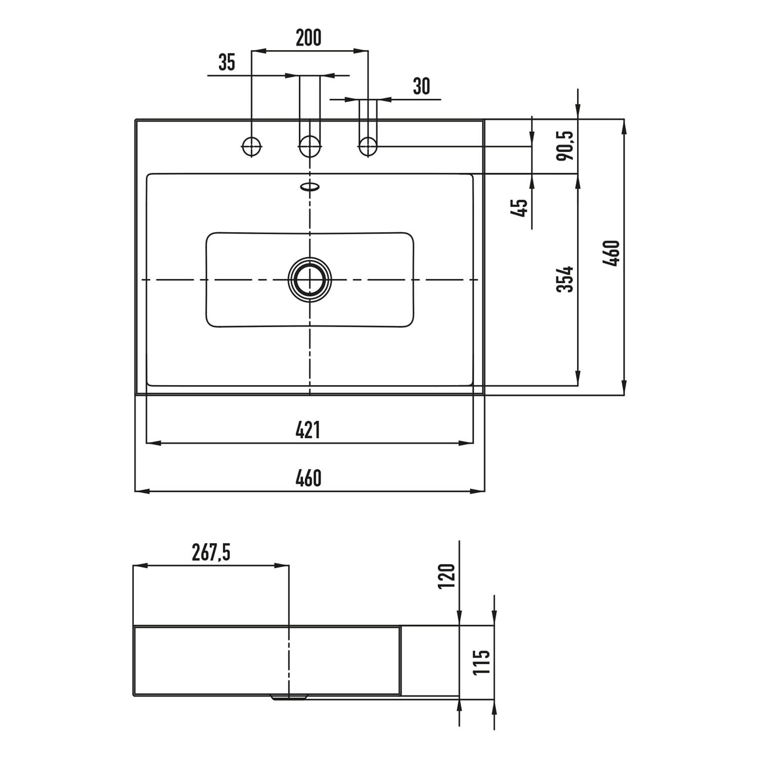 Kaldewei PURO Aufsatzwaschtisch 3156 mit 3 Hahnlochbohrungen, 46 cm