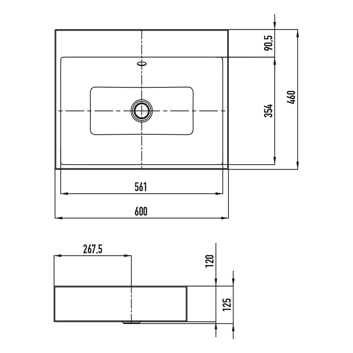 Kaldewei PURO Aufsatzwaschtisch 3157 ohne Hahnlochbohrung, 60 cm