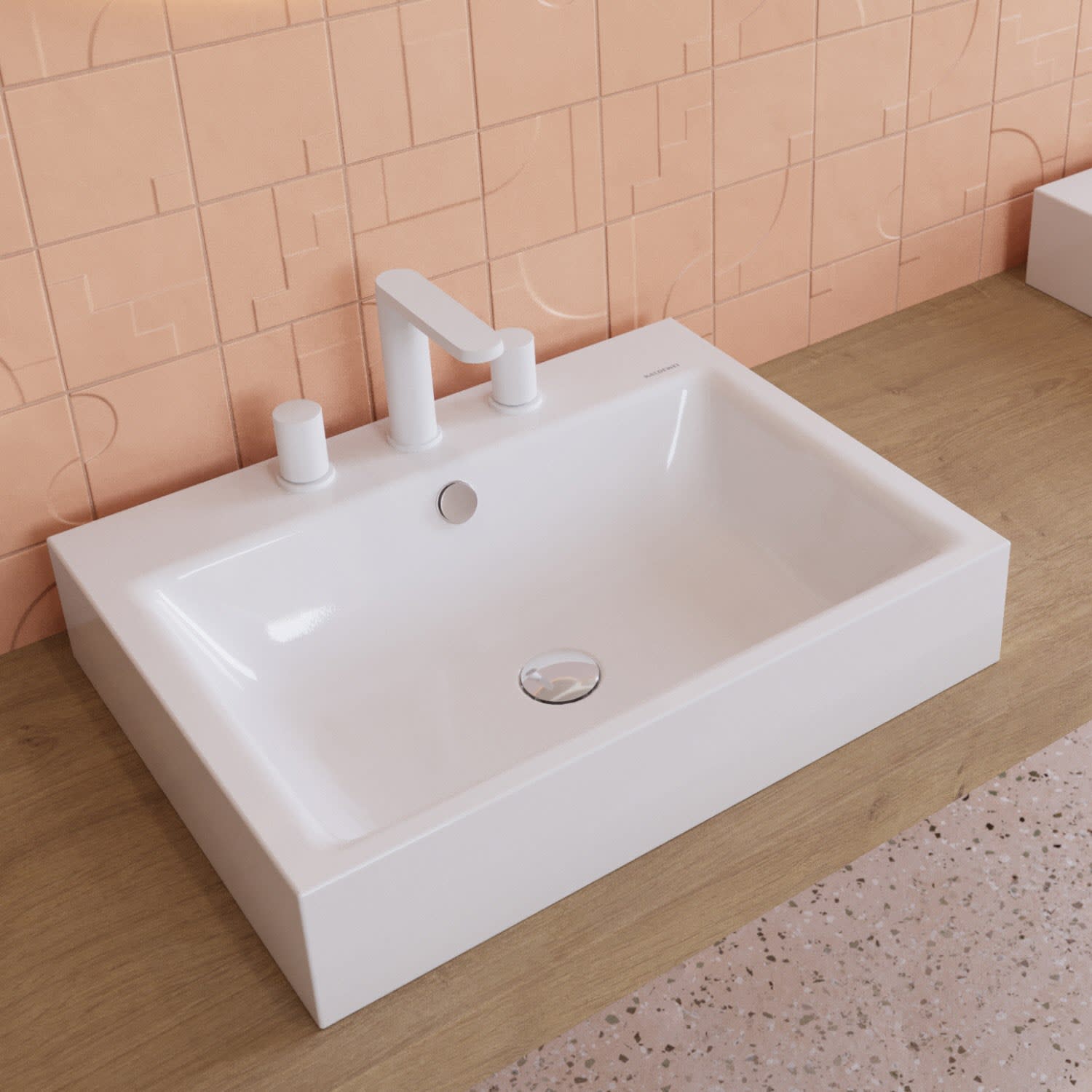 Kaldewei PURO Aufsatzwaschtisch 3157 mit 3 Hahnlochbohrungen, 60 cm