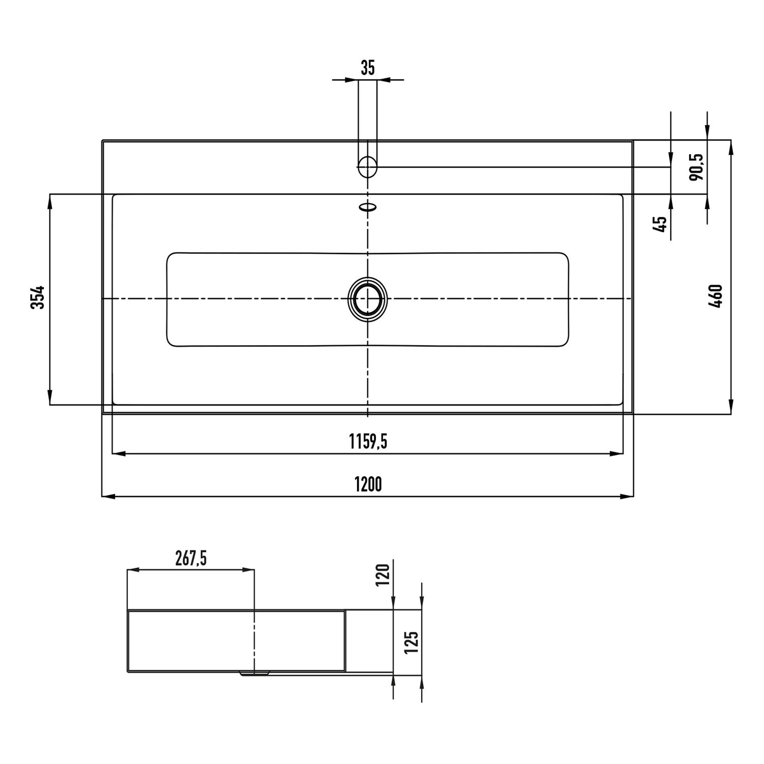 Kaldewei PURO Aufsatzwaschtisch 3168 mit 1 Hahnlochbohrung, 120 cm