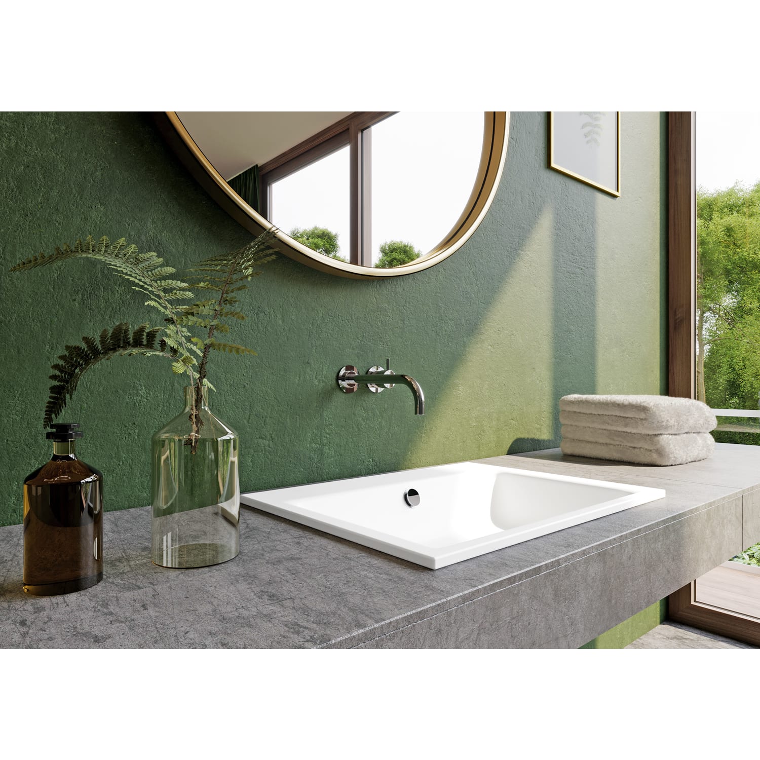 Mit seiner Abmessung und einer Randhöhe von nur 14 mm bietet der PURO-Einbauwaschtisch von Kaldewei ideale Voraussetzungen für eine Möbelintegration oder Einbauvariante, bei der auch Funktion und Ästhetik gleichermaßen zählen.