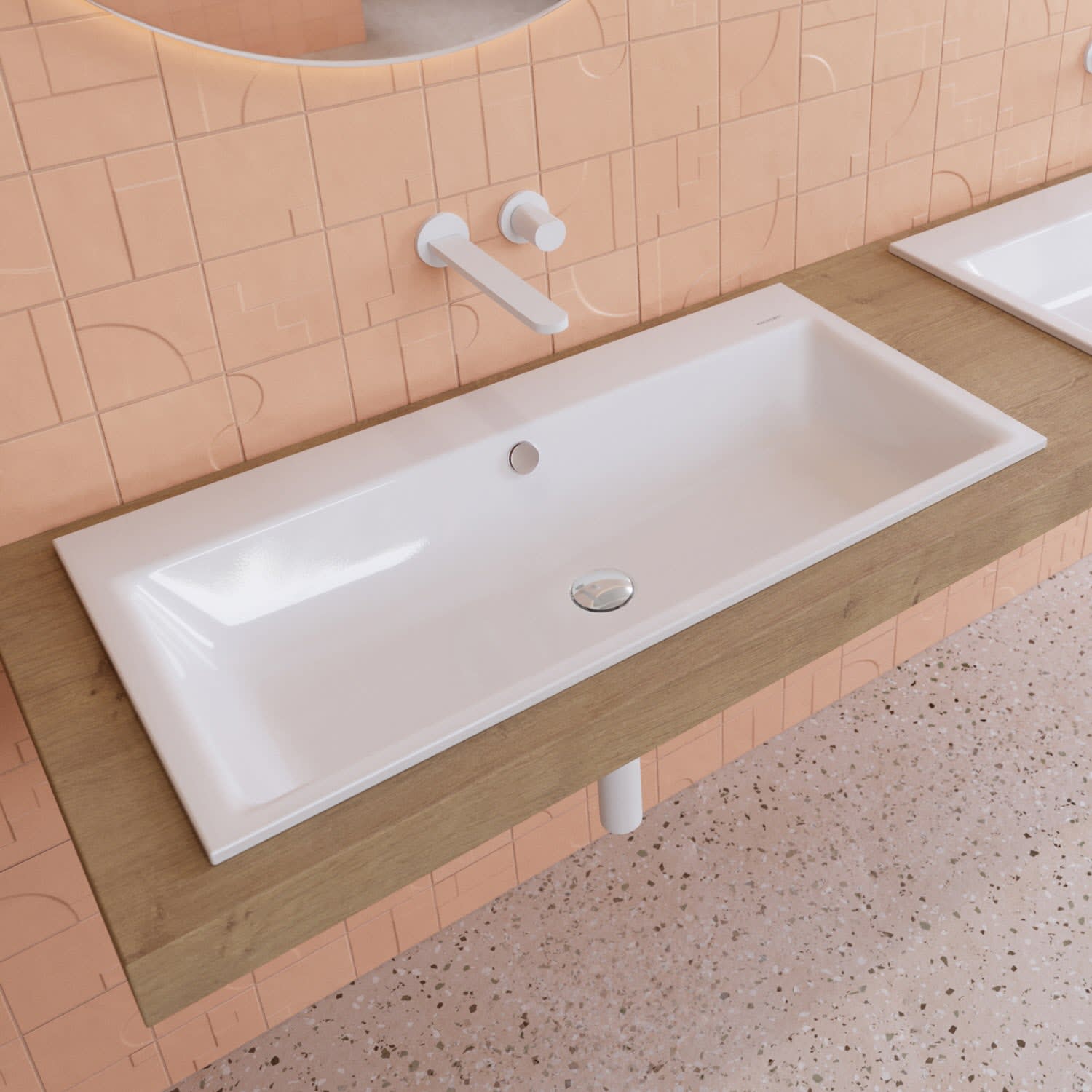 Tauchen Sie ein in eine Badwelt, in der großformatige Behaglichkeit auf modernes Design trifft – mit dem Kaldewei PURO Einbauwaschtisch als stilvollem Kern Ihres Waschplatzes.