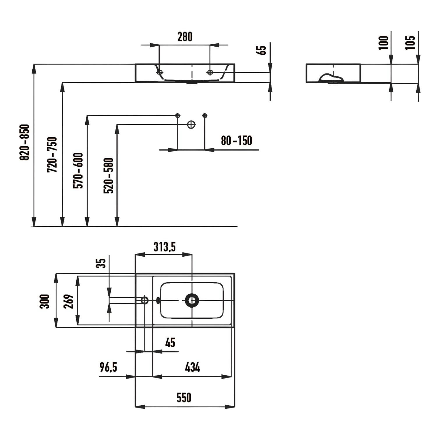 Kaldewei PURO Wand- Handwaschtisch 3162 mit 1 Hahnlochbohrung links, 55 cm