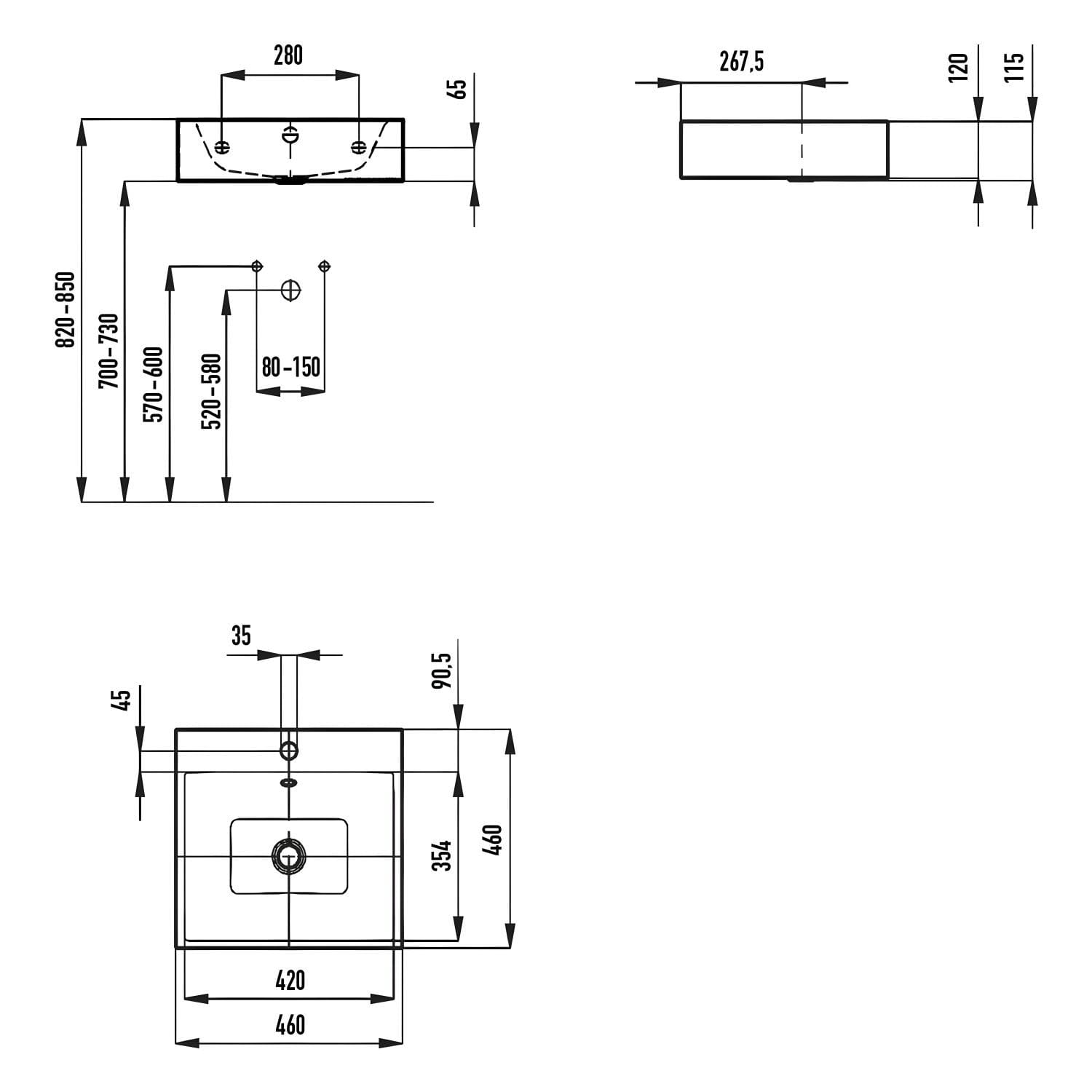 Kaldewei PURO Wandwaschtisch 3163 mit 1 Hahnlochbohrung, 46 cm