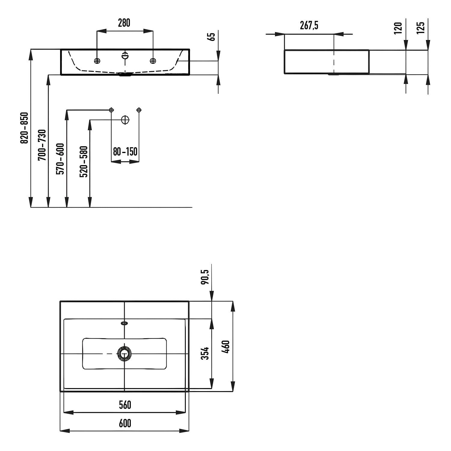 Kaldewei PURO Wandwaschtisch 3164 ohne Hahnlochbohrung, 60 cm