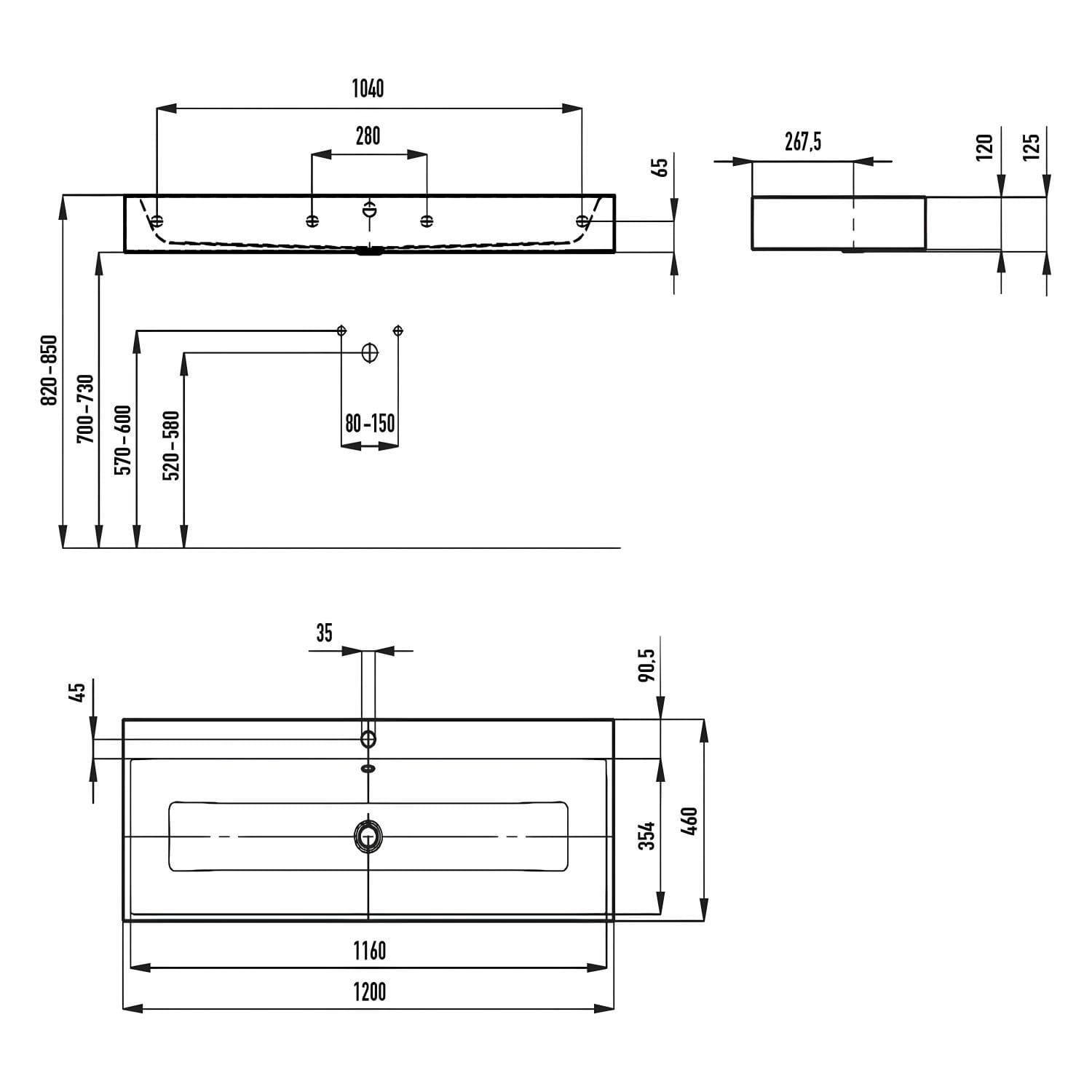 Kaldewei PURO Wandwaschtisch 3167 mit 1 Hahnlochbohrung, 120 cm