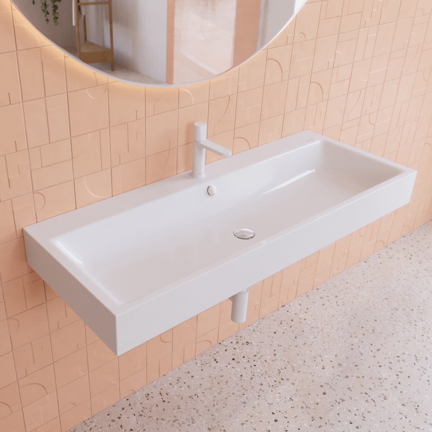Die puristische, rechteckige Form des PURO Wandwaschtischs, entworfen von Anke Salomon, setzt mit präzisen Rändern ein Zeichen für modernste Badästhetik. Reduktion wird hier zum Ausdruck von Stil.