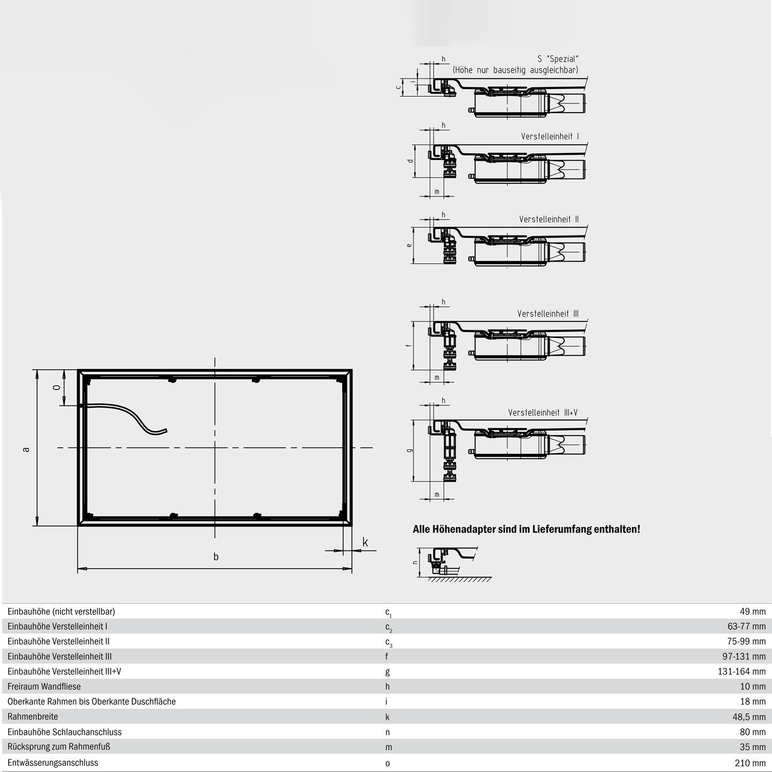 Die Ablaufgarnitur KA 90/KA 120 mit Kriechwasseranschluss (abhängig von der Duschwanne) ist noch erforderlich.
