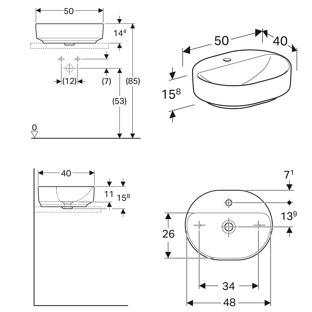 Geberit VariForm Aufsatzwaschtisch 50 x 40 cm, ohne Überlauf