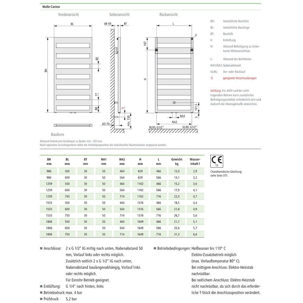 Kermi Casteo Badheizkörper 50 x 3 x 180,6 cm