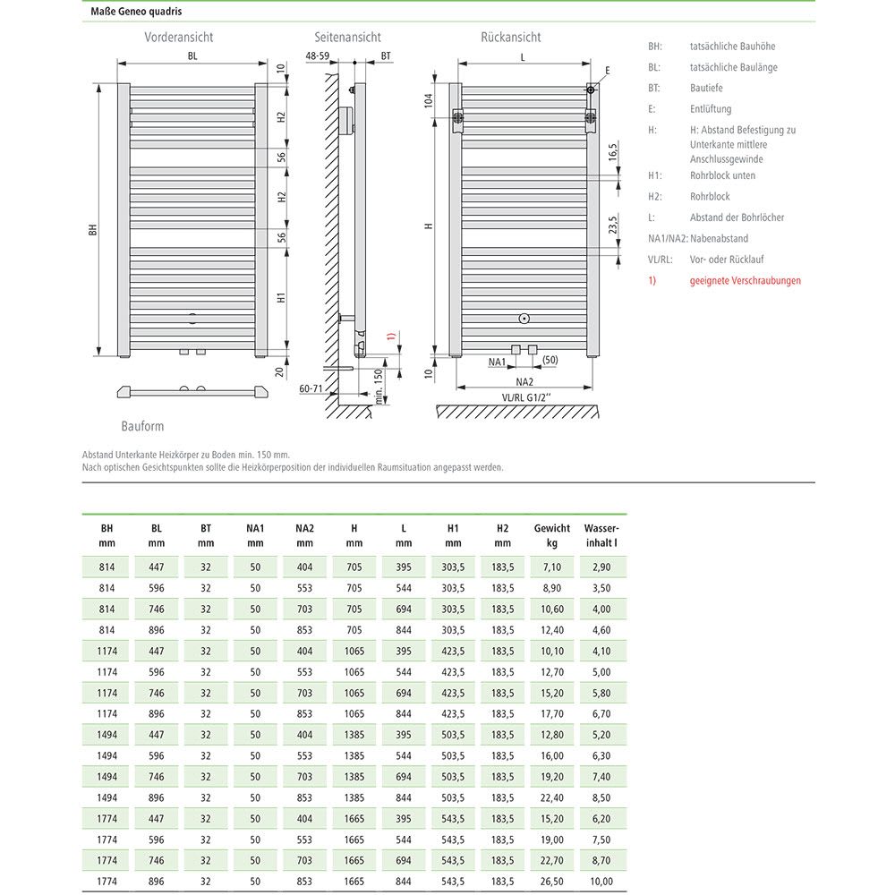 Kermi Geneo quadris Badheizkörper 59,6 x 3,2 x 81,4 cm