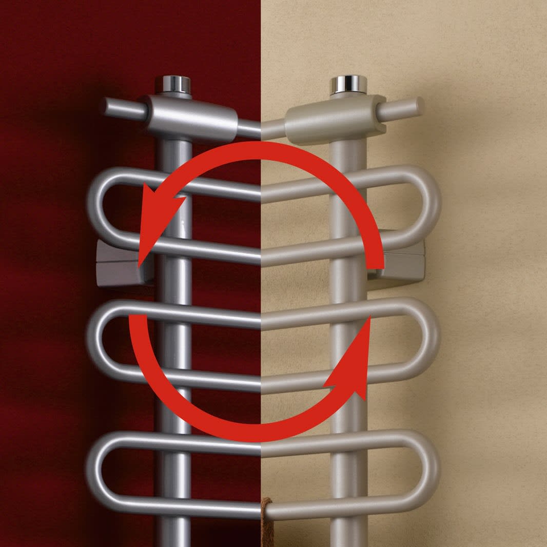 - Rohrschlange seitlich offen, um Handtücher zum Wärmen bequem einhängen zu können