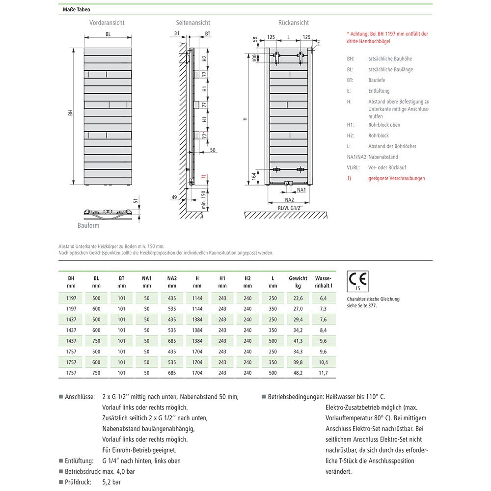- 2 x G 1/2‘‘ mittig nach unten, Nabenabstand 5 cm, Vorlauf links oder rechts möglich