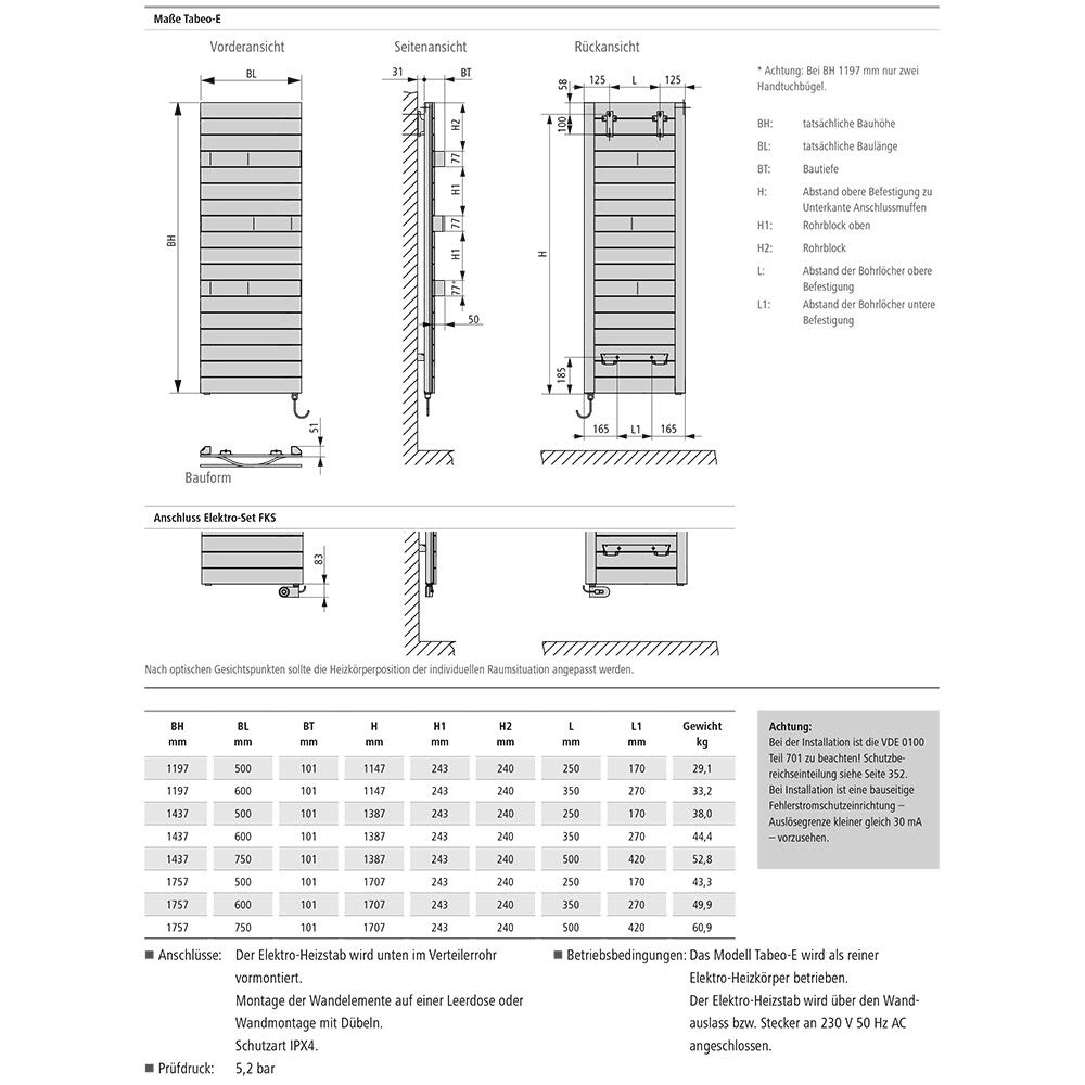 - Das Modell Tabeo-E wird als reiner Elektro-Heizkörper betrieben.