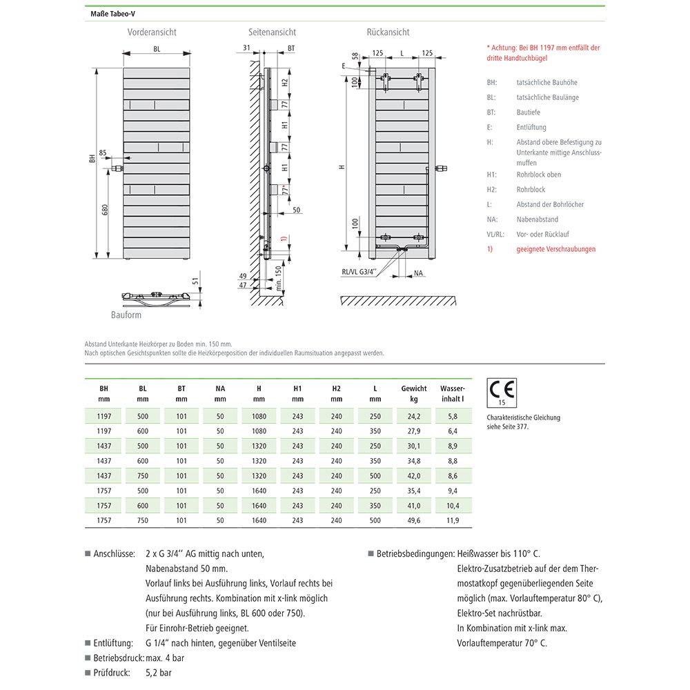 - Prüfdruck: 5,2 bar