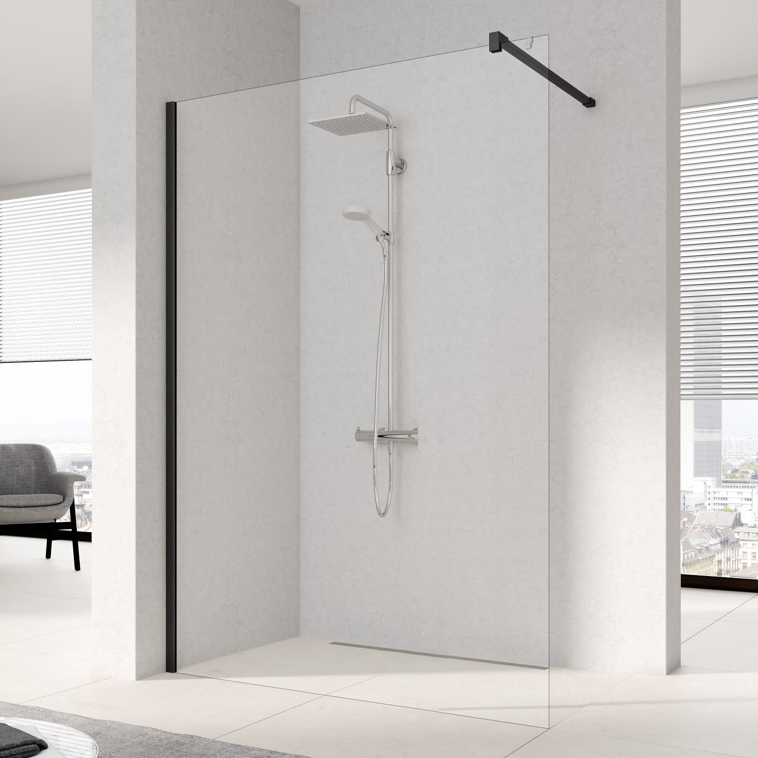 - Teilgerahmte WALK-IN-Glasanlage mit Wandbefestigung,
