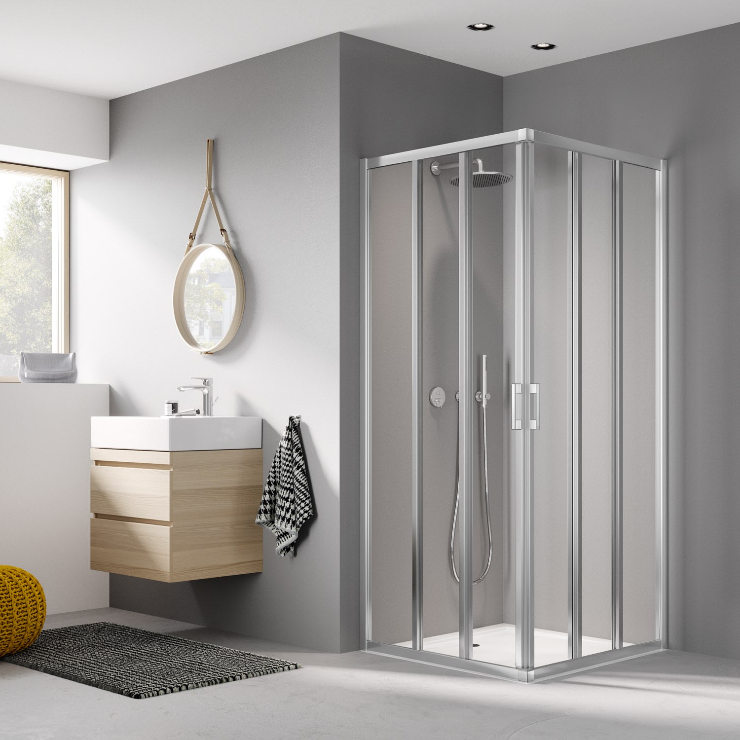 - Für eine vollständige Duschabtrennung werden zwei Halbteile benötigt!