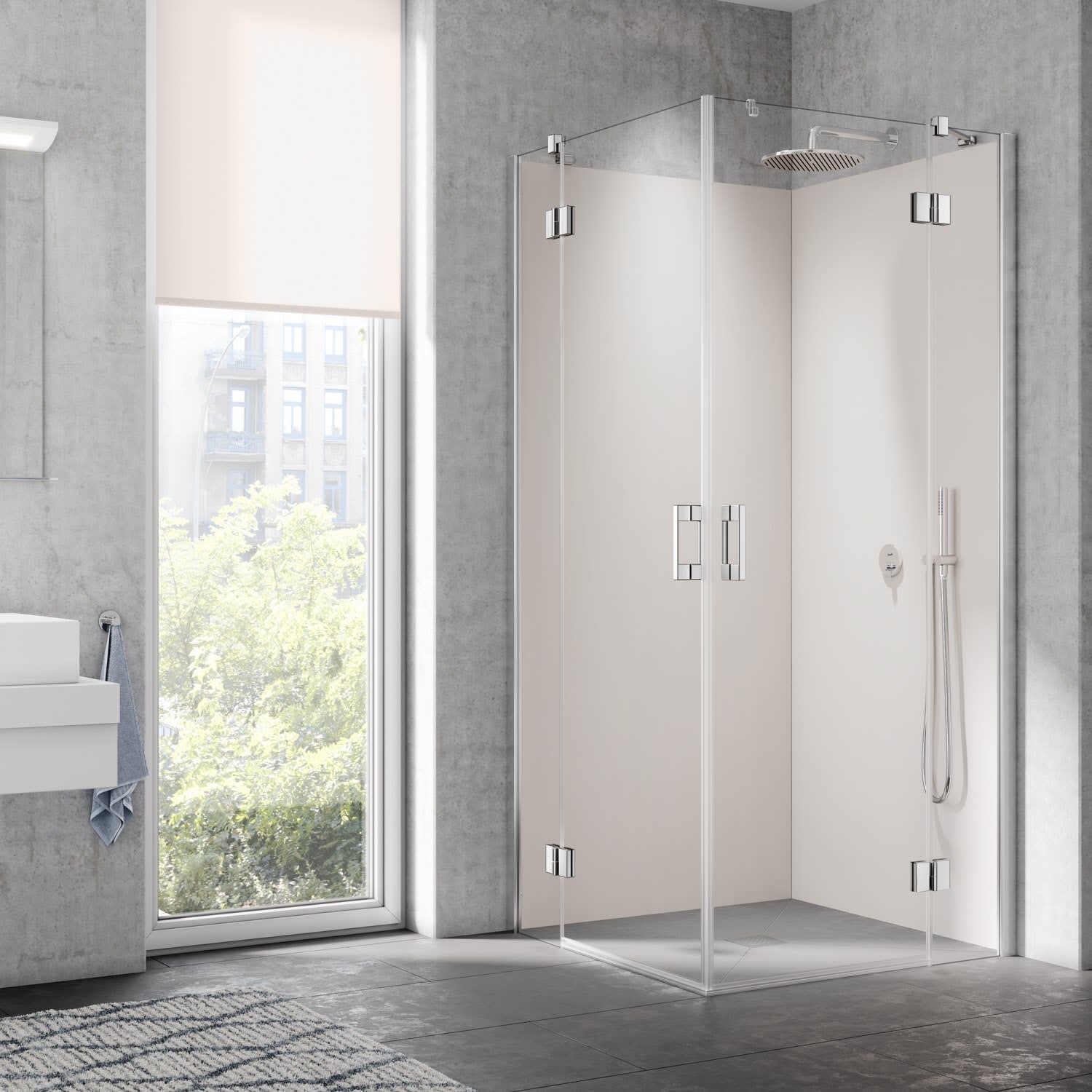 Kermi Liga Eckeinstieg Schwingtür mit Festteil für Duschplatz 80 cm, Halbteil rechts