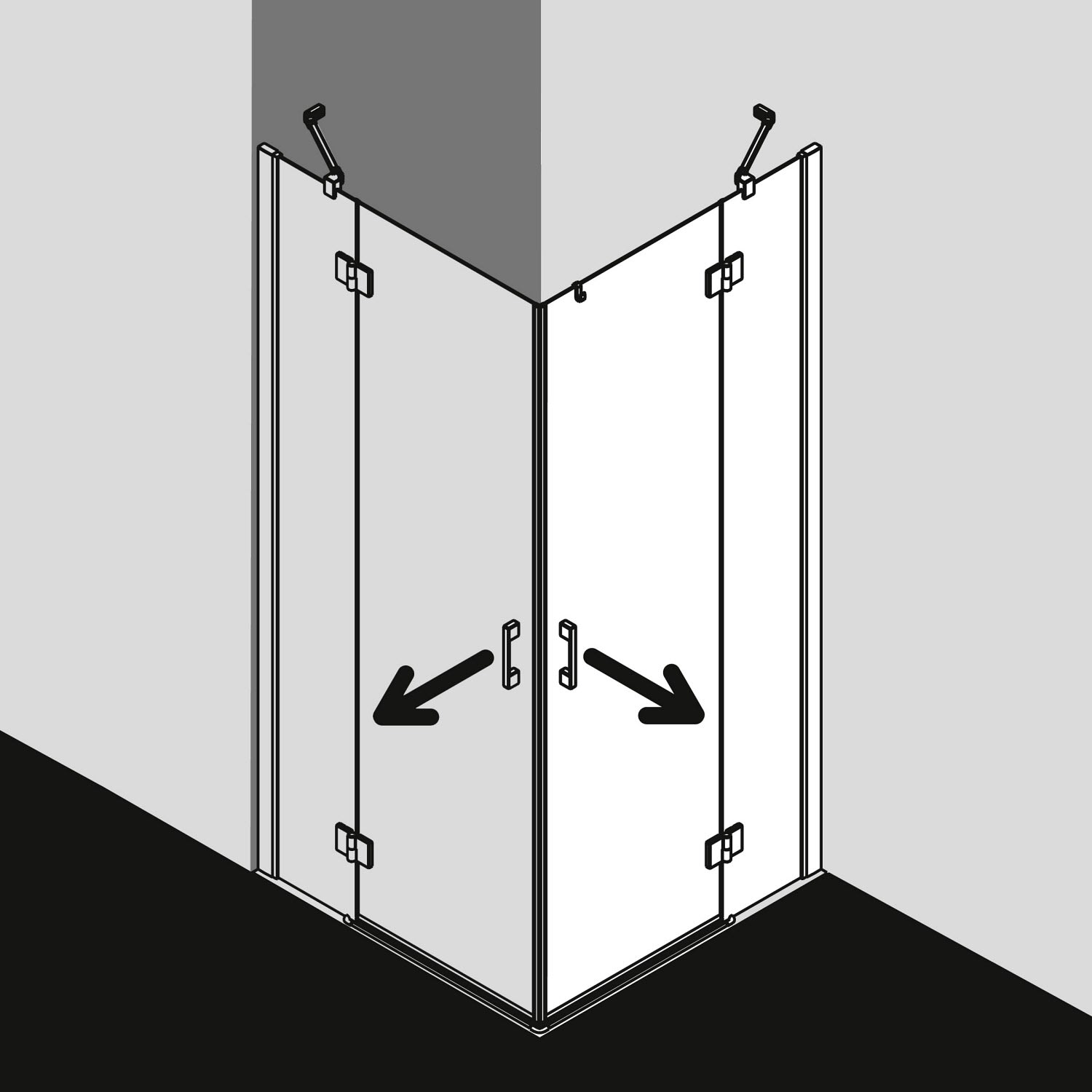 - Eckeinstieg Schwingtür mit Festteil, Halbteil rechts