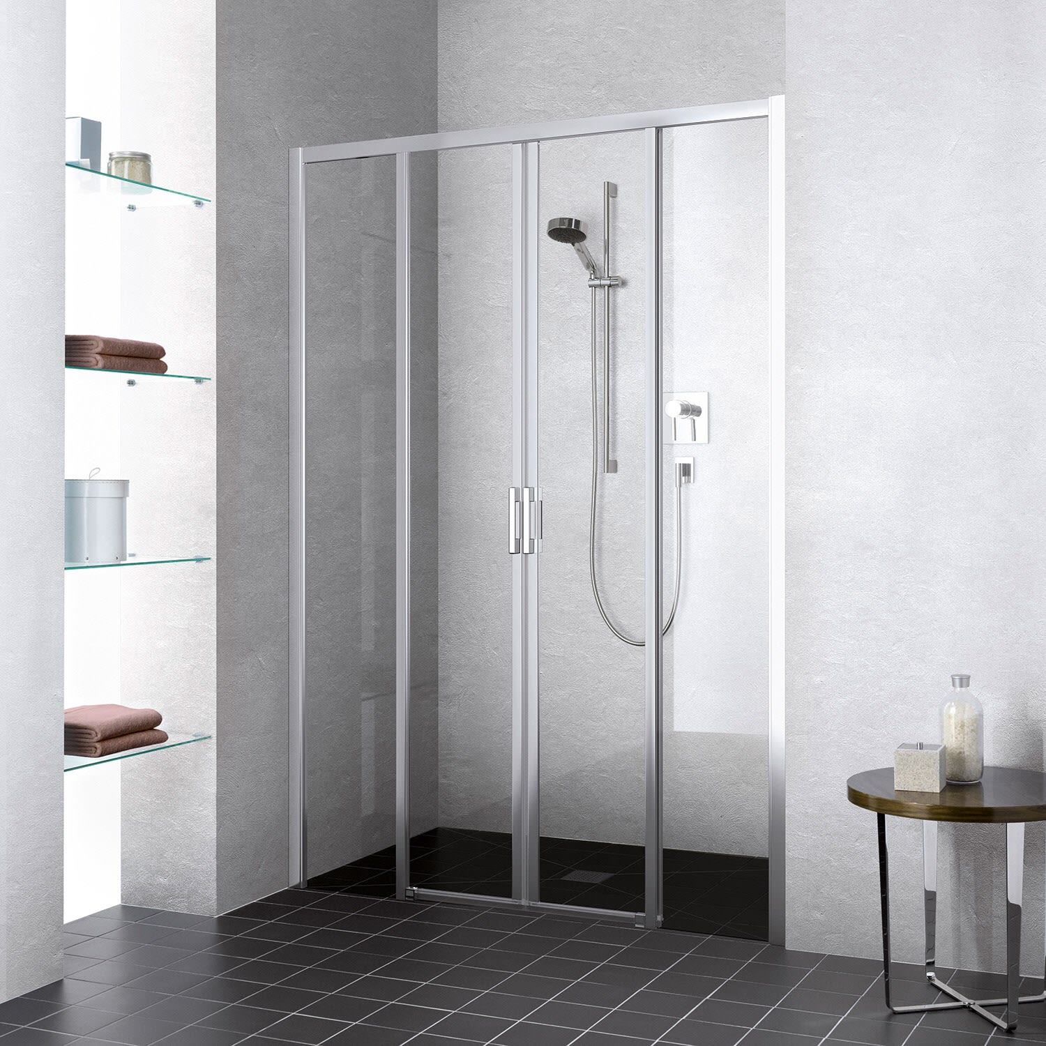 - Für eine vollständige Duschabtrennung werden zwei Halbteile benötigt!