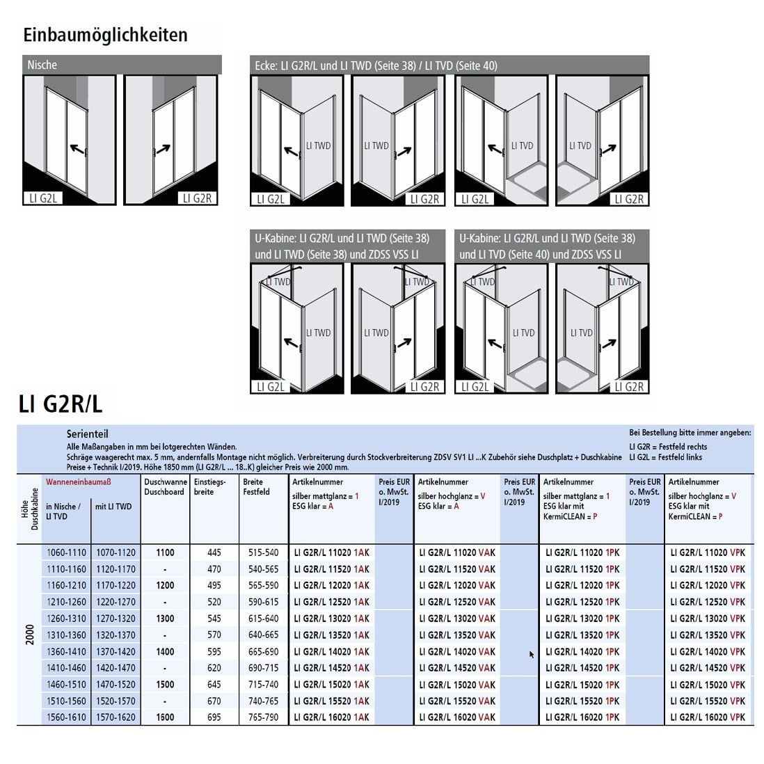 - in Kombination mit LITWD oder LITVD Seitenwand für Montage