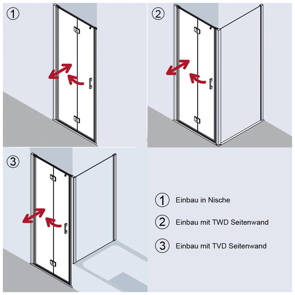 Kermi Liga Pendel-Falttür für Duschplatz 80 cm mit 2 Glasflügeln, Anschlag links