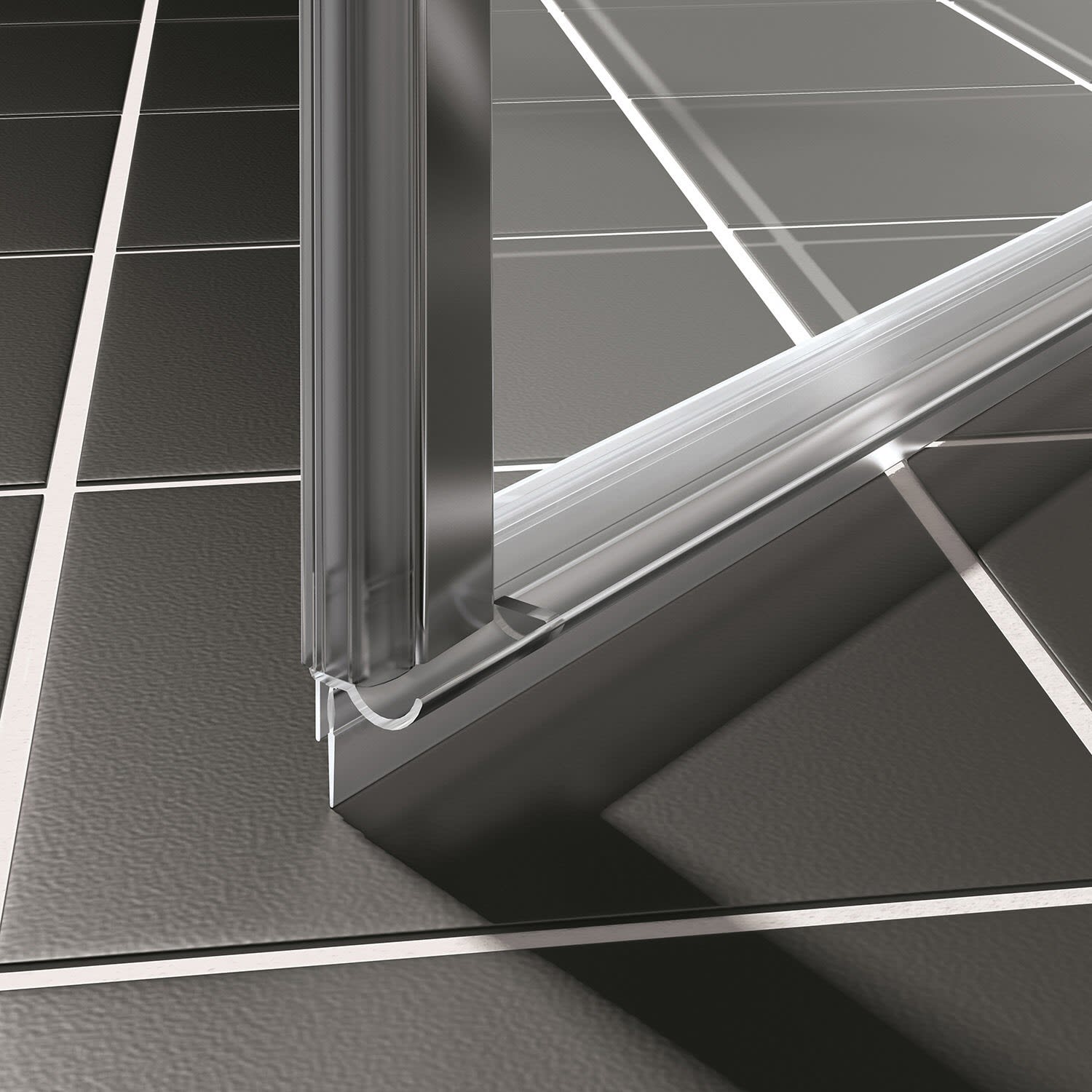 - Bei Oberfläche Silber Mattglanz und KermiEXTRA, Griffe, Gelenke und Anschlüsse für Bodenschwelle in edlem Chrom.
