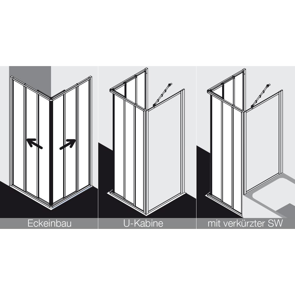 Kermi Nova 2000 Eckeinstieg 3-teilig 90 x 200 cm, Gleittüren Halbteil