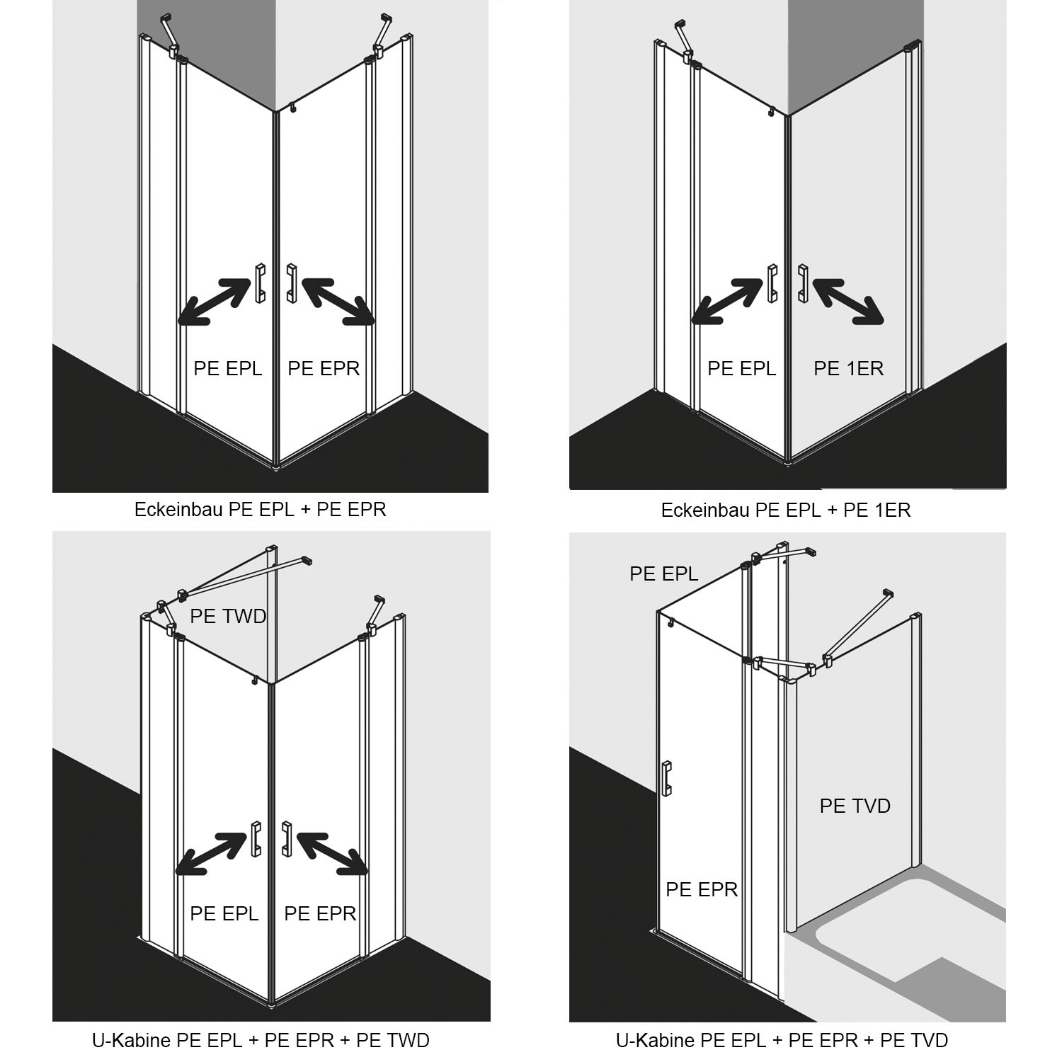 - Zum Einbau in eine Ecke mit Halbteil PE1ER bzw. PEEPR.