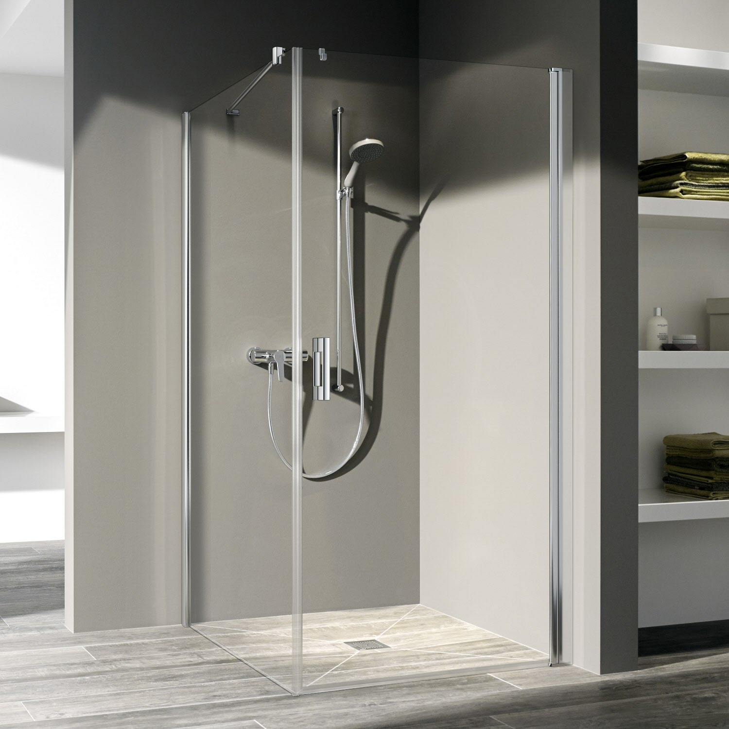 - Für eine vollständige Duschabtrennung werden zwei Halbteile benötigt!