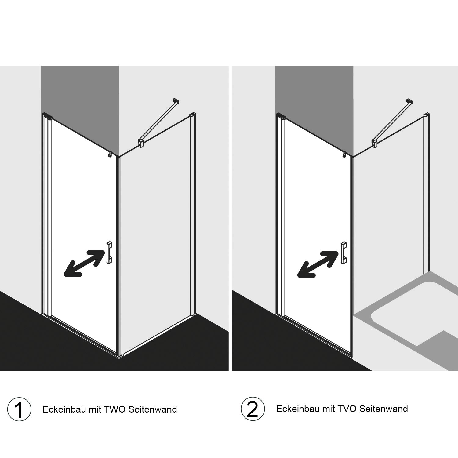 - Für eine vollständige Duschabtrennung werden zwei Halbteile benötigt!