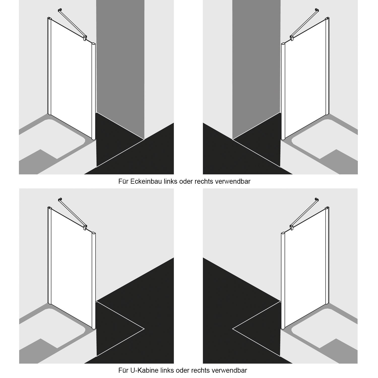 - Für eine vollständige Duschabtrennung werden zwei Halbteile benötigt!