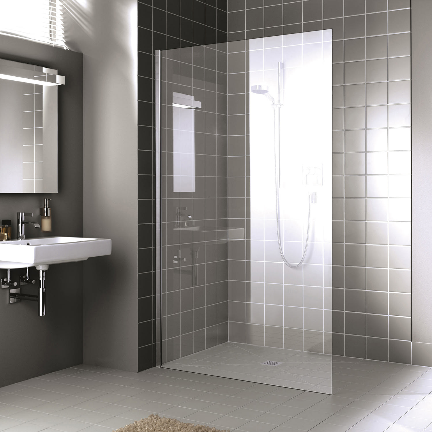 - teilgerahmte Walk-In-Glasanlage mit Wandbefestigung