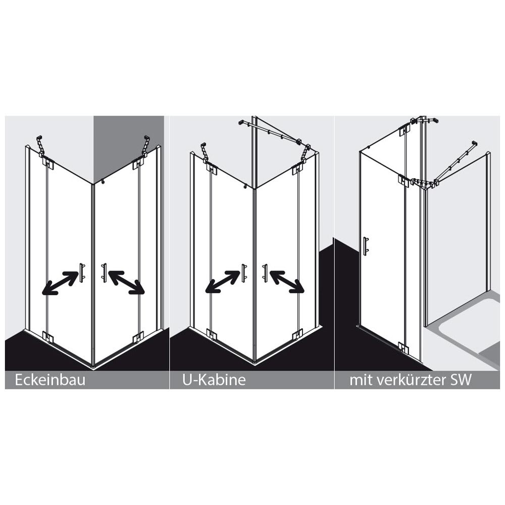 - Eckeinstieg Pendeltüren mit Festfeld - Halbteil rechts zur Montage auf Duschwanne