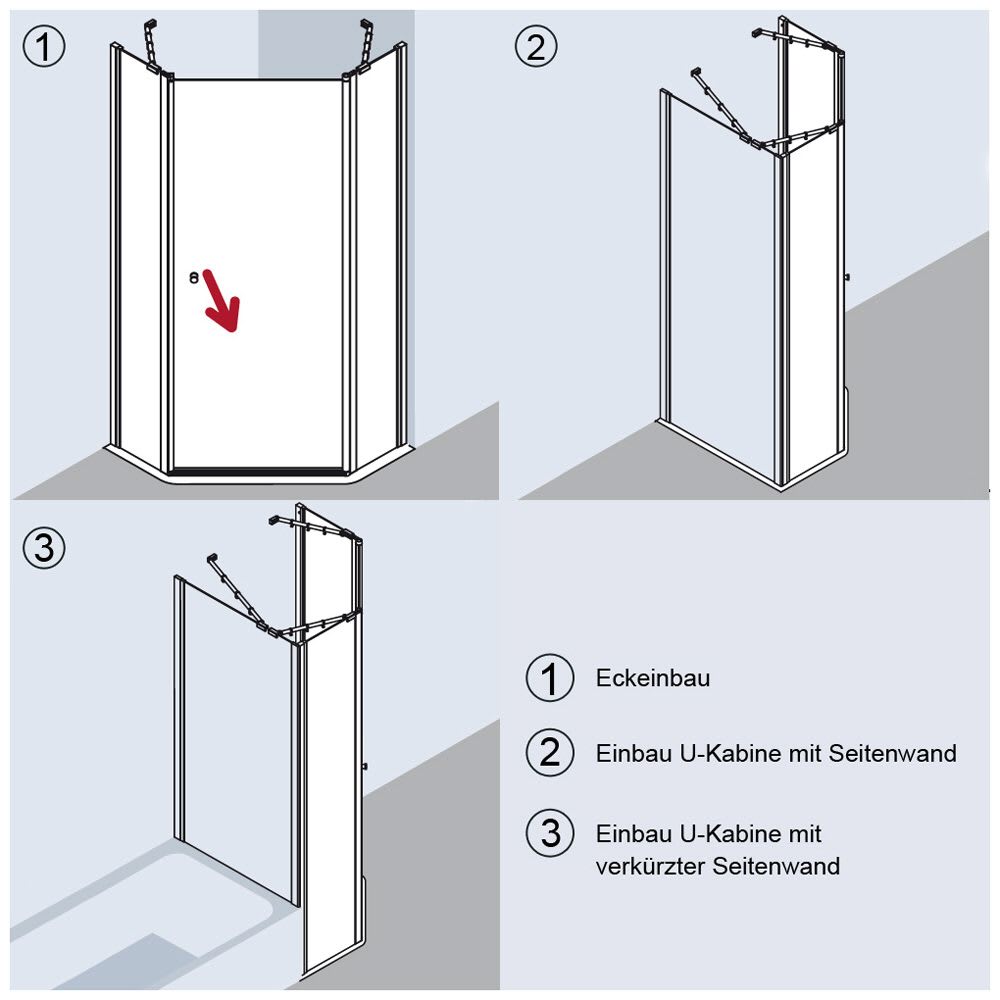 - bei Montage als U-Kabine bitte darauf achten, dass entsprechende Seitenwände separat bestellt werden müssen
