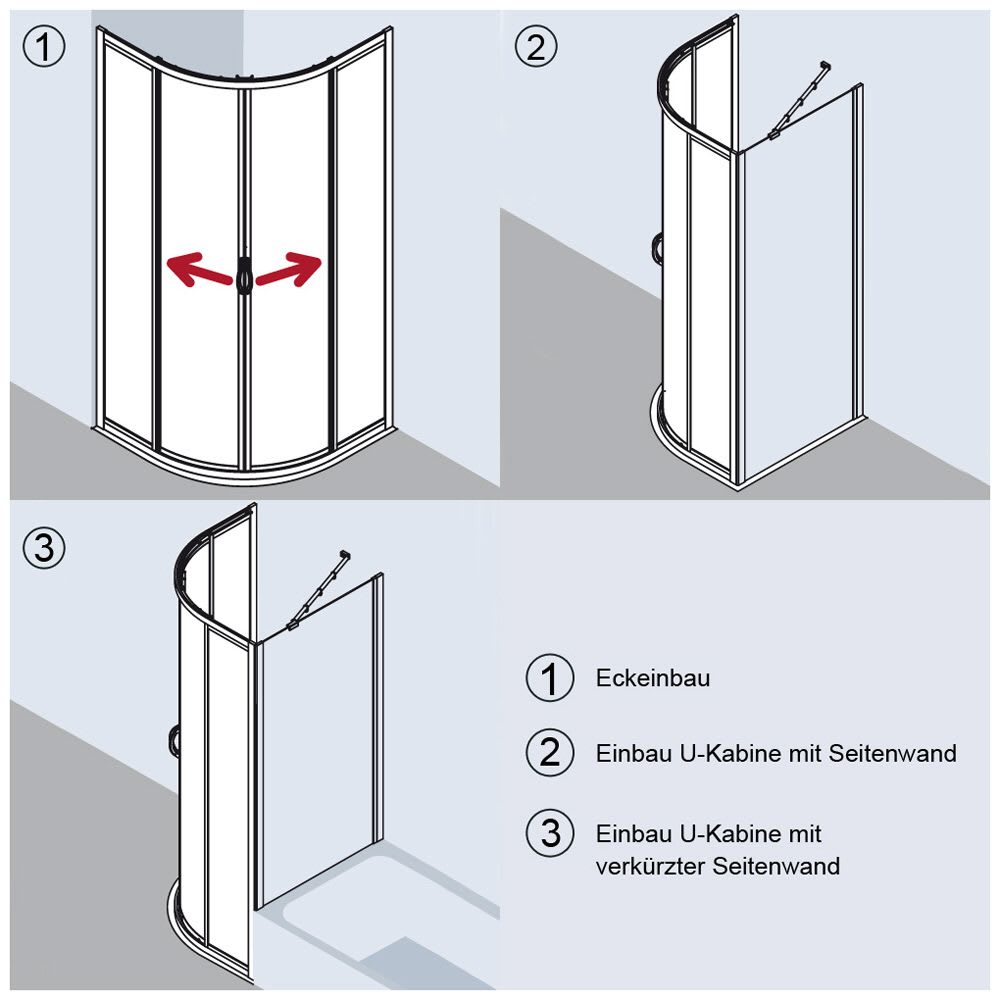 - zur Montage in Ecke oder als U-Kabine in Verbindung mit den Seitenwänden I2TWO oder I2TWO verkürzt