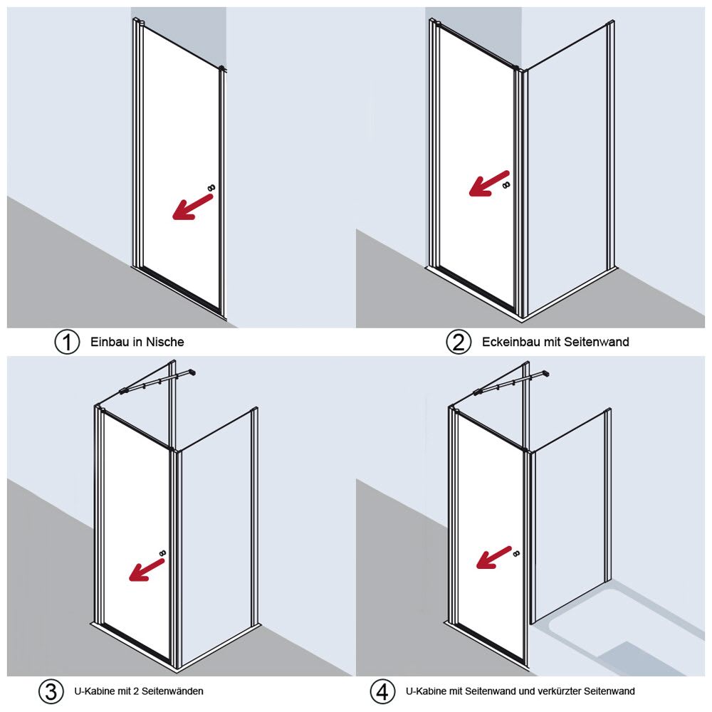 - zum Einbau in der Nische oder Ecke bzw. U-Kabine