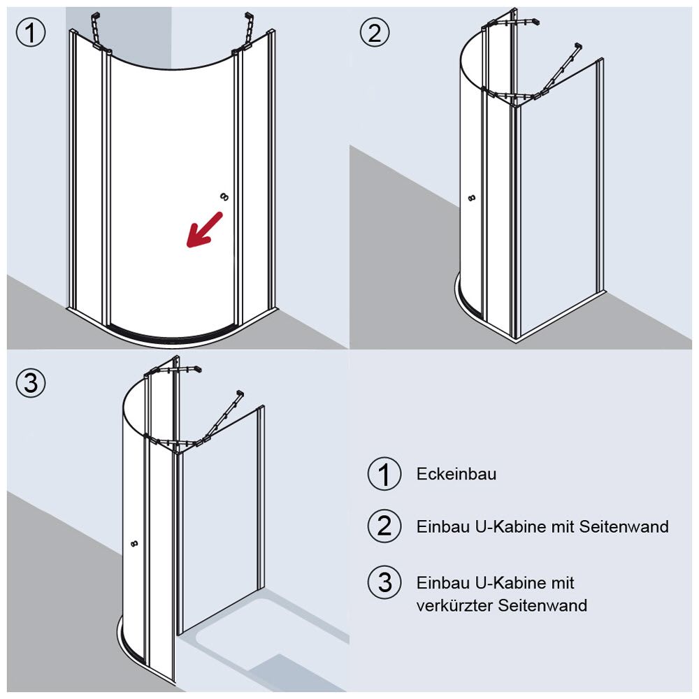- bei Montage als U-Kabine bitte darauf achten, dass entsprechende Seitenwände separat bestellt werden müssen