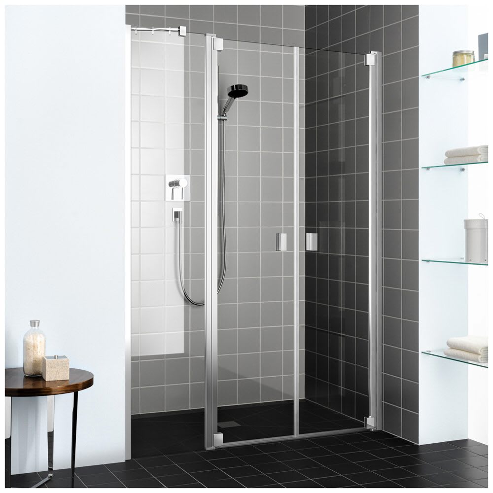 Kermi Raya Pendeltür 2-flügelig 120 cm mit 1 Festteil links für Nische und Kombination mit Seitenwand