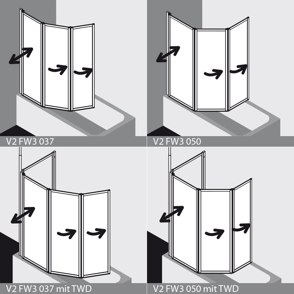 Kermi Vario 2000 Faltwand 3-flügelig über Badewanne 155 x 140 cm