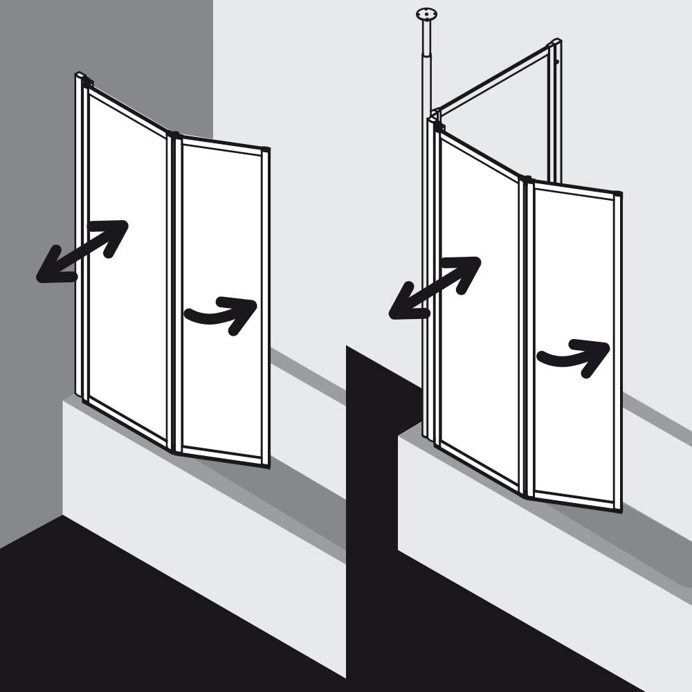 Kermi Vario 2000 Faltwand 2-flügelig auf Badewanne 100 x 140 cm