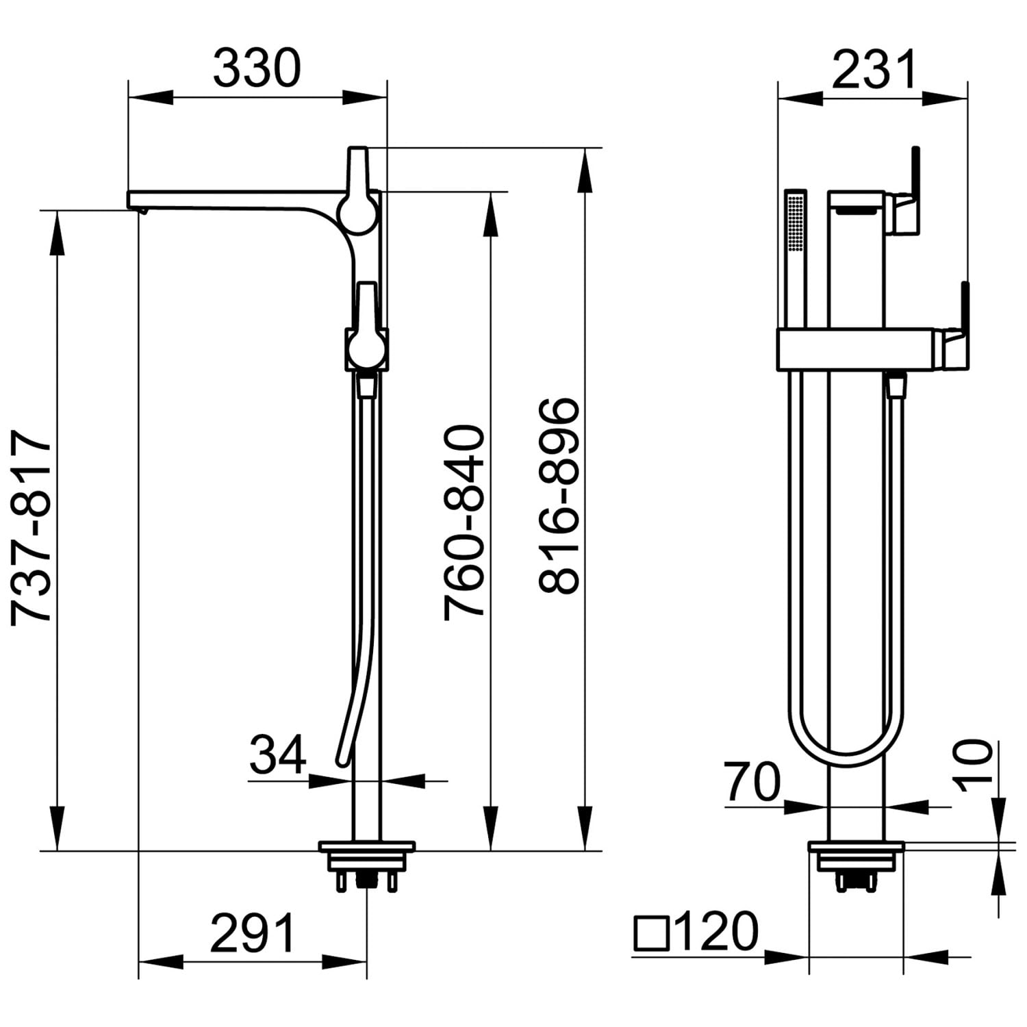 - Auslaufhöhe: 73,7 - 81,7 cm