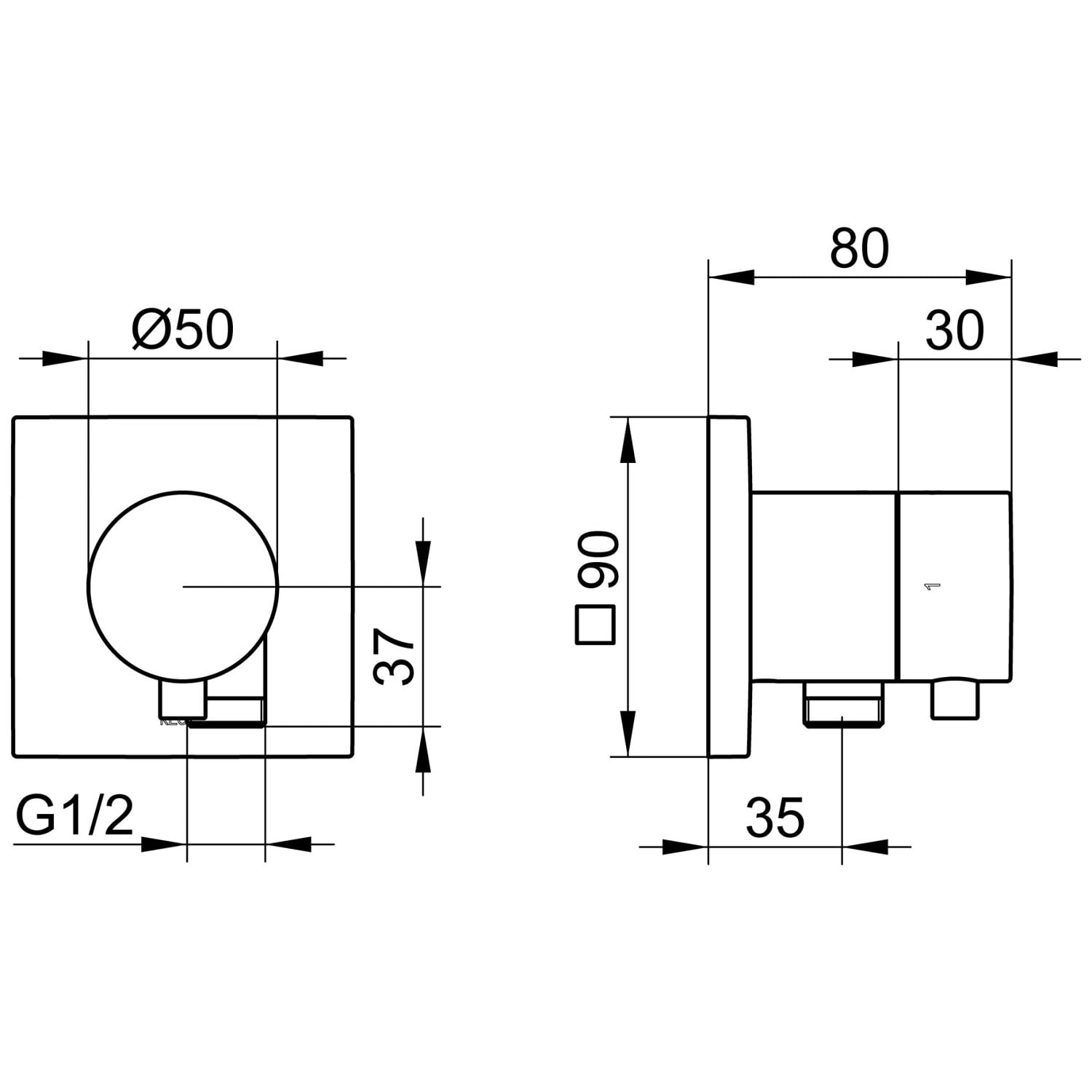 Keuco IXMO Ab- und Umstellventil für 2 Verbraucher, Unterputz, mit Schlauchanschluss, Rosette eckig