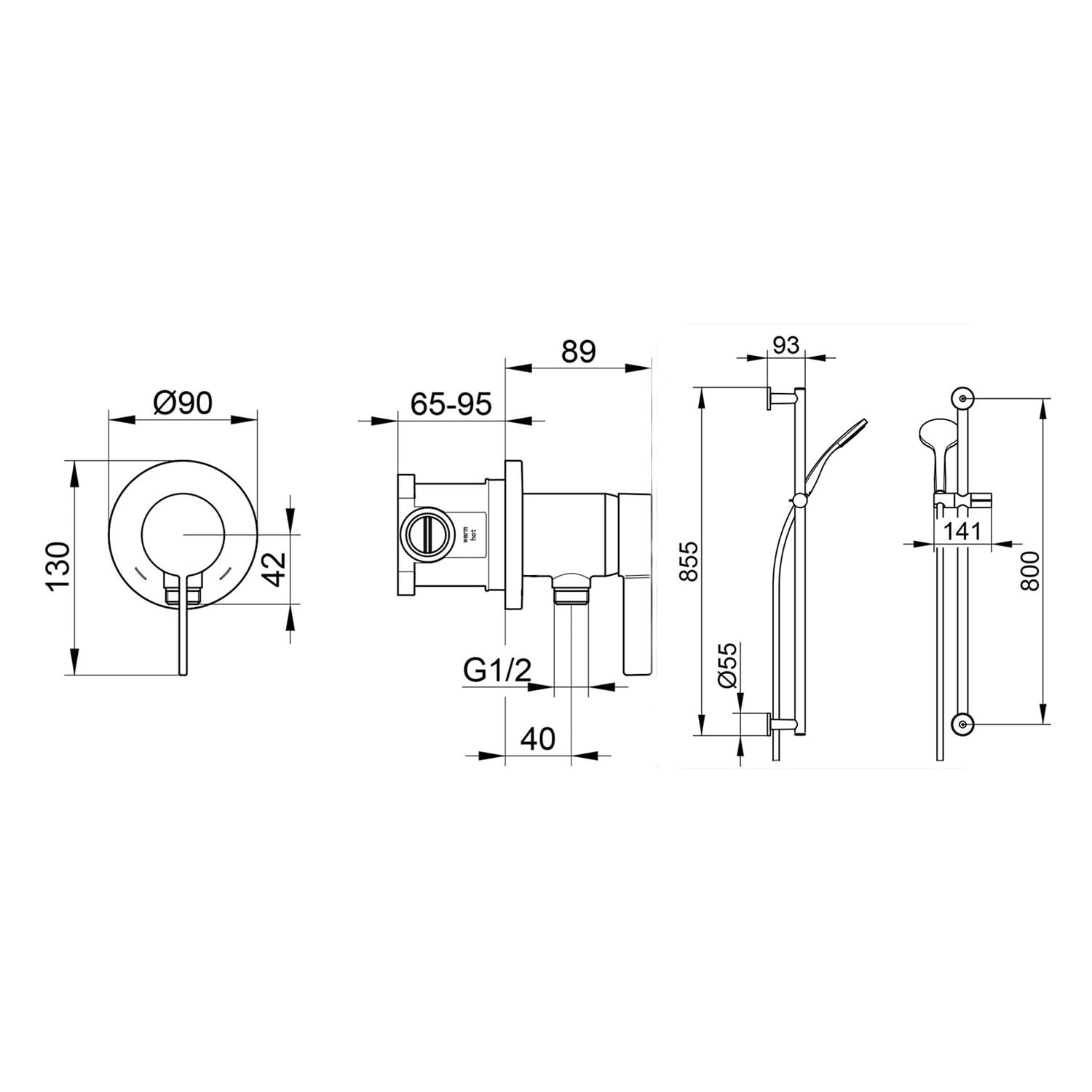 - Länge: 85,1 cm, inkl. Fliesenausgleichscheibe