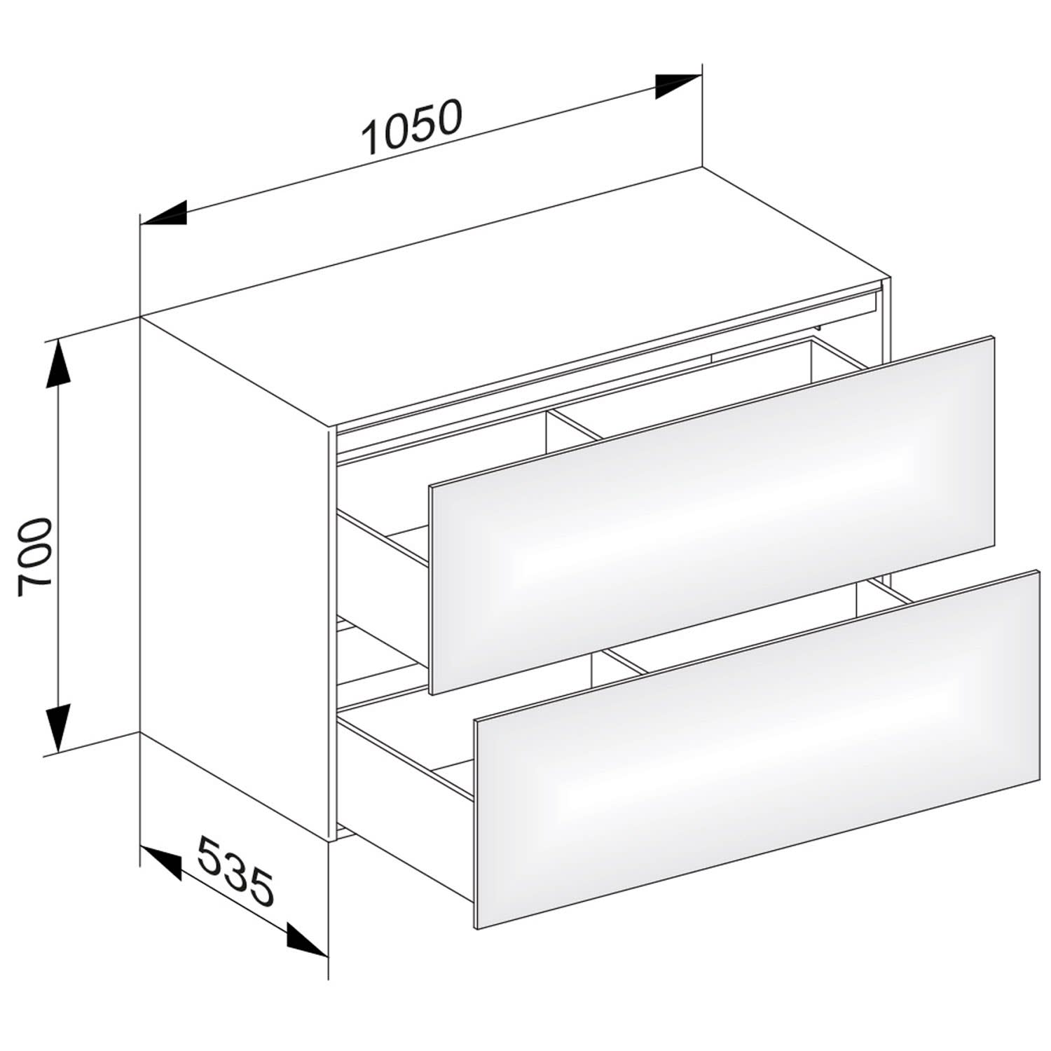 B: 105 T: 53,5 H: 70 cm
