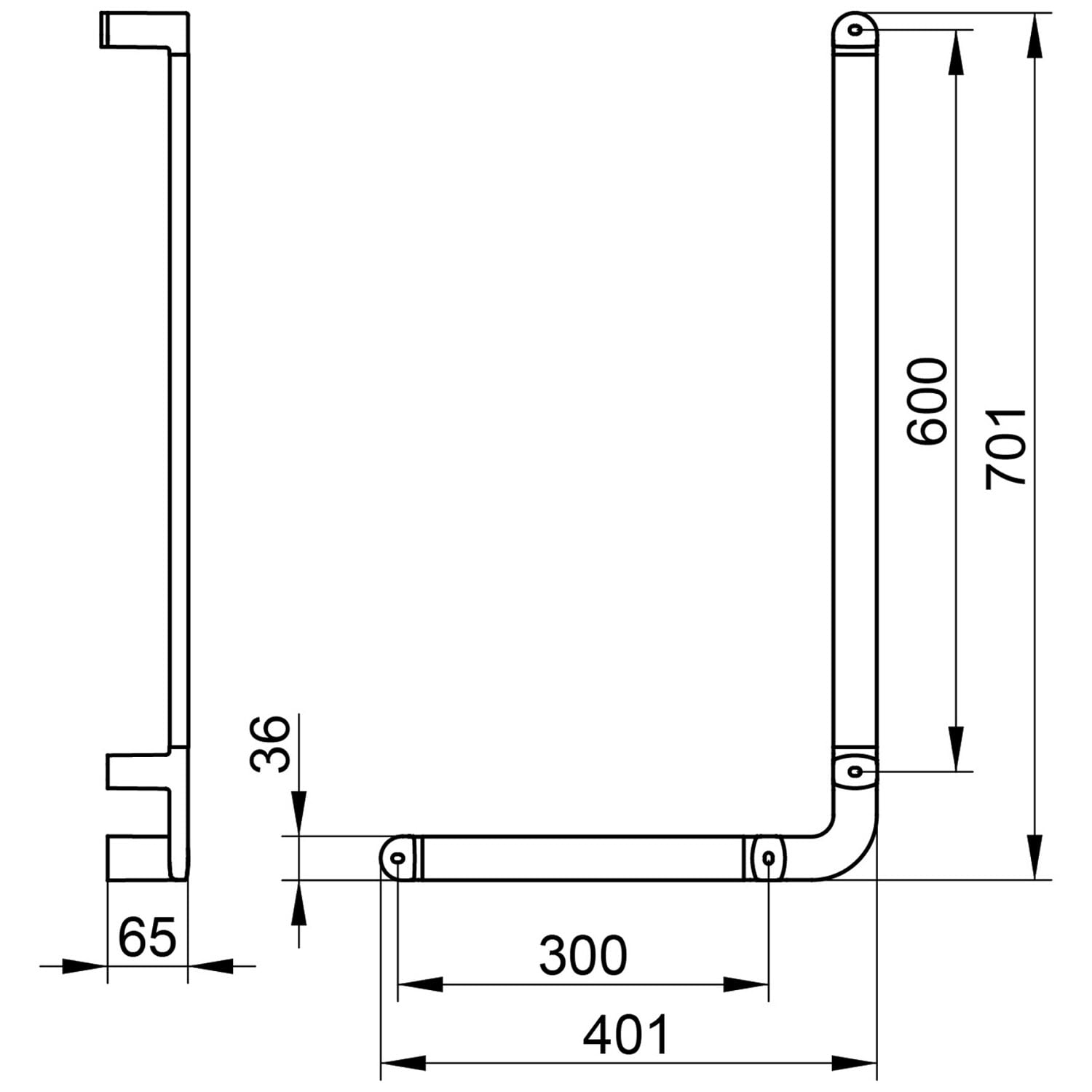 Keuco Elegance Winkelgriff 90° links 30 x 60 cm