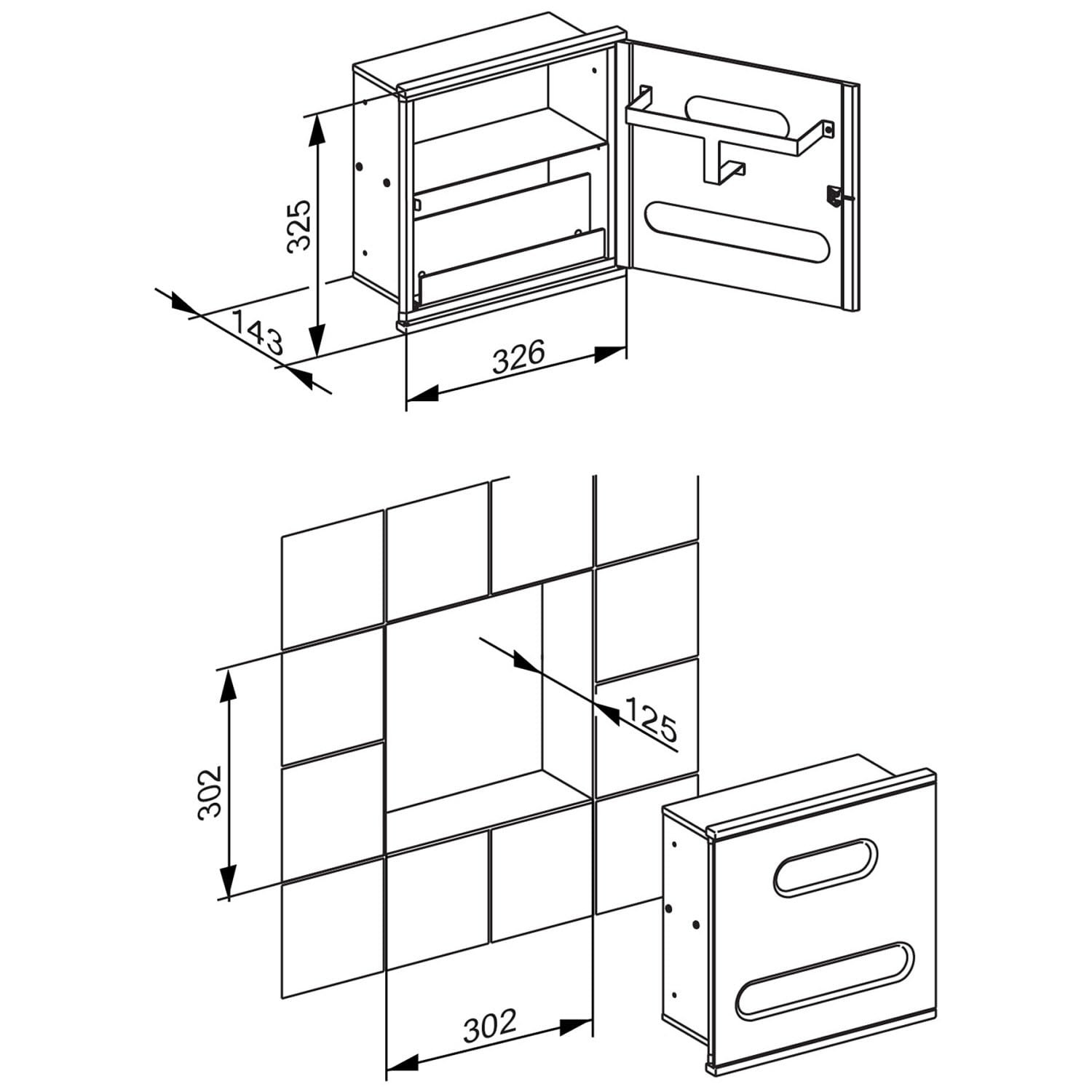 - Papierhandtuch- & Kleenexspender für die Wandeinbaumontage