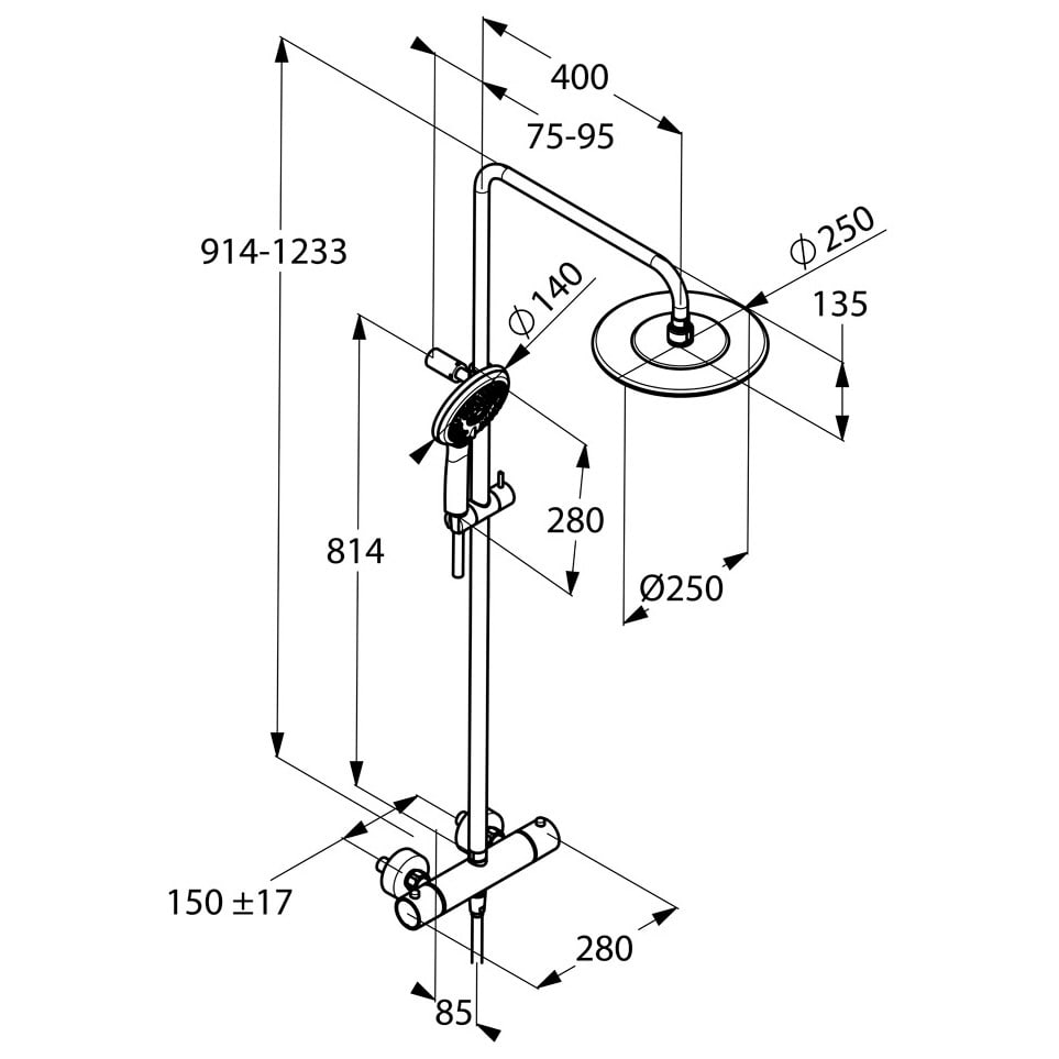 House Duschsystem mit Thermostat-Brausebatterie und Kopfbrause rund, Aufputz