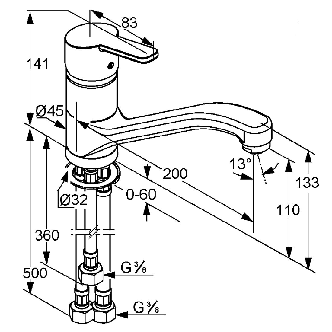 - flexible Anschlüsse G 3/8