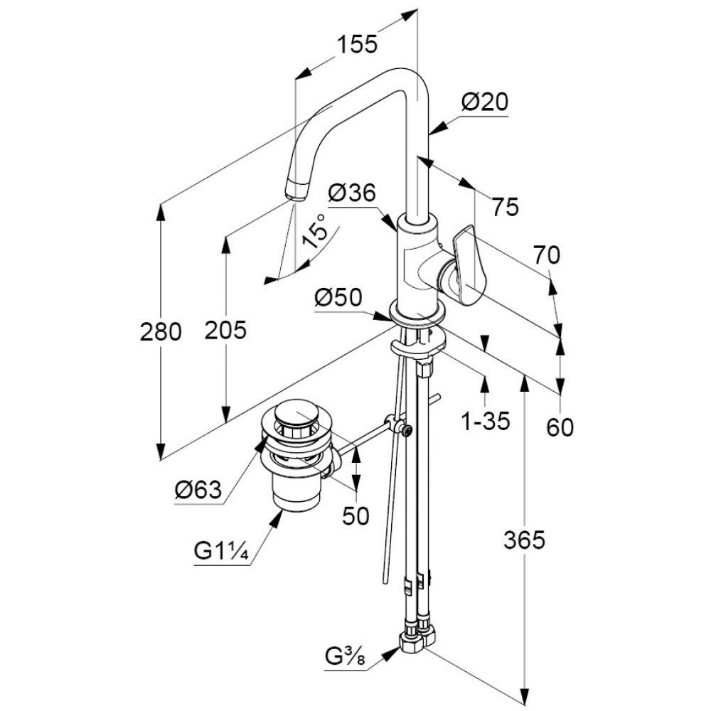 - mit Ablaufgarnitur G 1 1/4 aus Metall